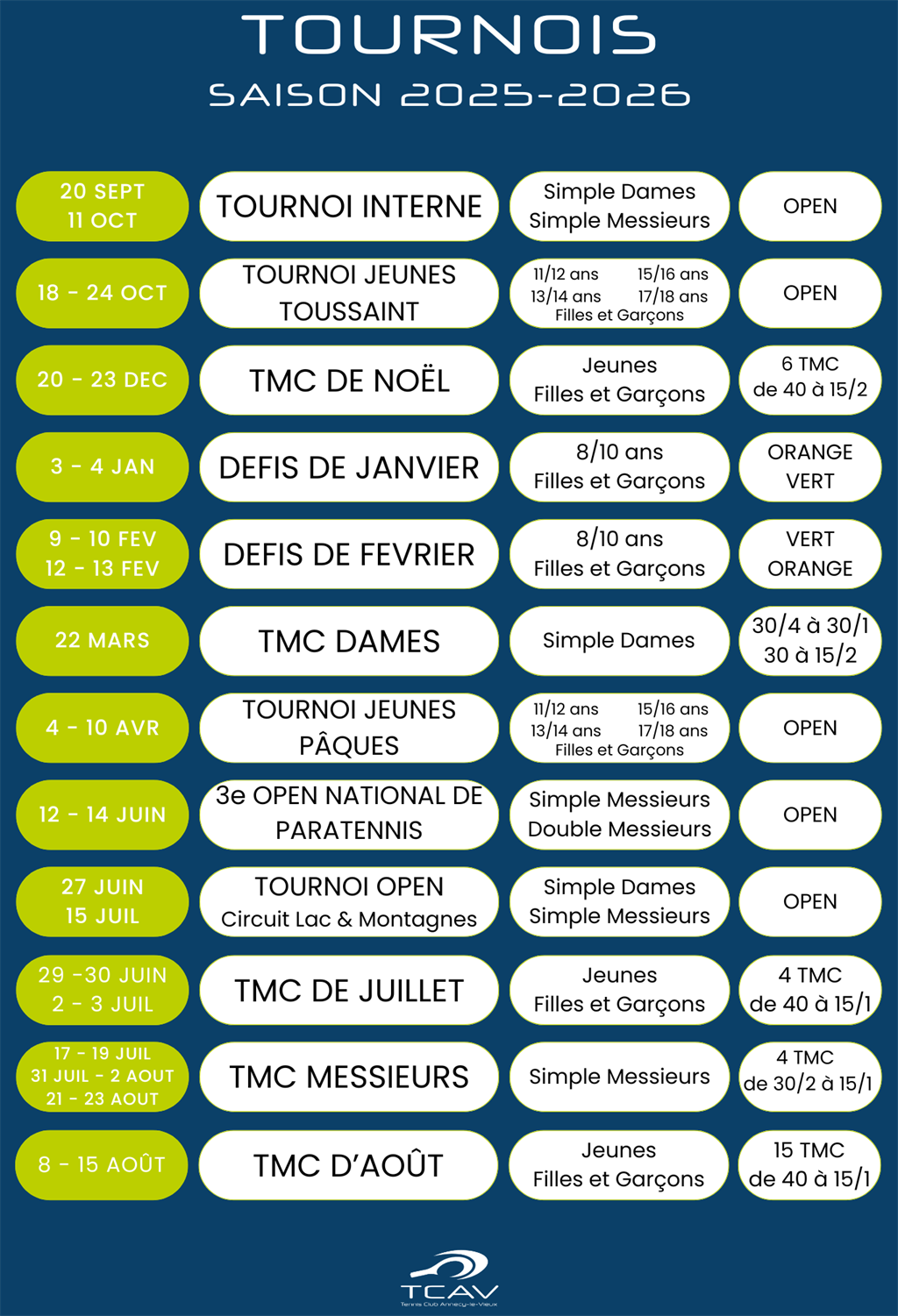 Abonnez-vous à notre newsletter pour suivre toute l’actualité du TCAV : évènements, tournois, stages, classement des équipes et plus encore…
